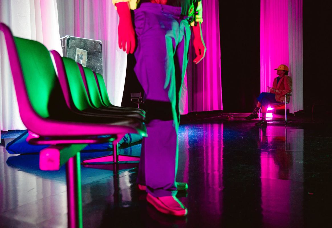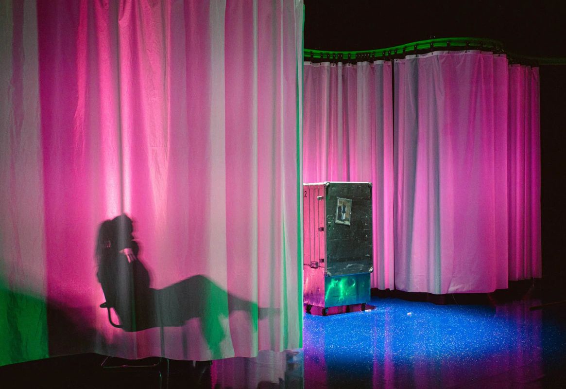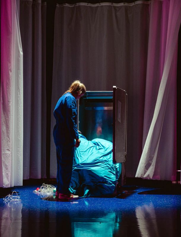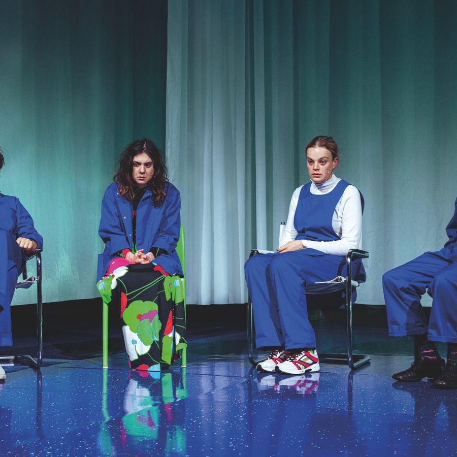 tekst & regie Jesse Vandamme / met Louise Bergez, Lucas van der Vegt, Lucie Plasschaert & Joeri Happel / muziek Laurens Mannaerts / decor & kostuums Chloé Wasselin-Dandre / dramaturgie Kaatje De Geest / lichtontwerp Dennis Diels / coach schrijfproces Kristof Van Baarle / outside eye Laurens Aneca / met dank aan Emma Gheeraert / © Michiel Devijver