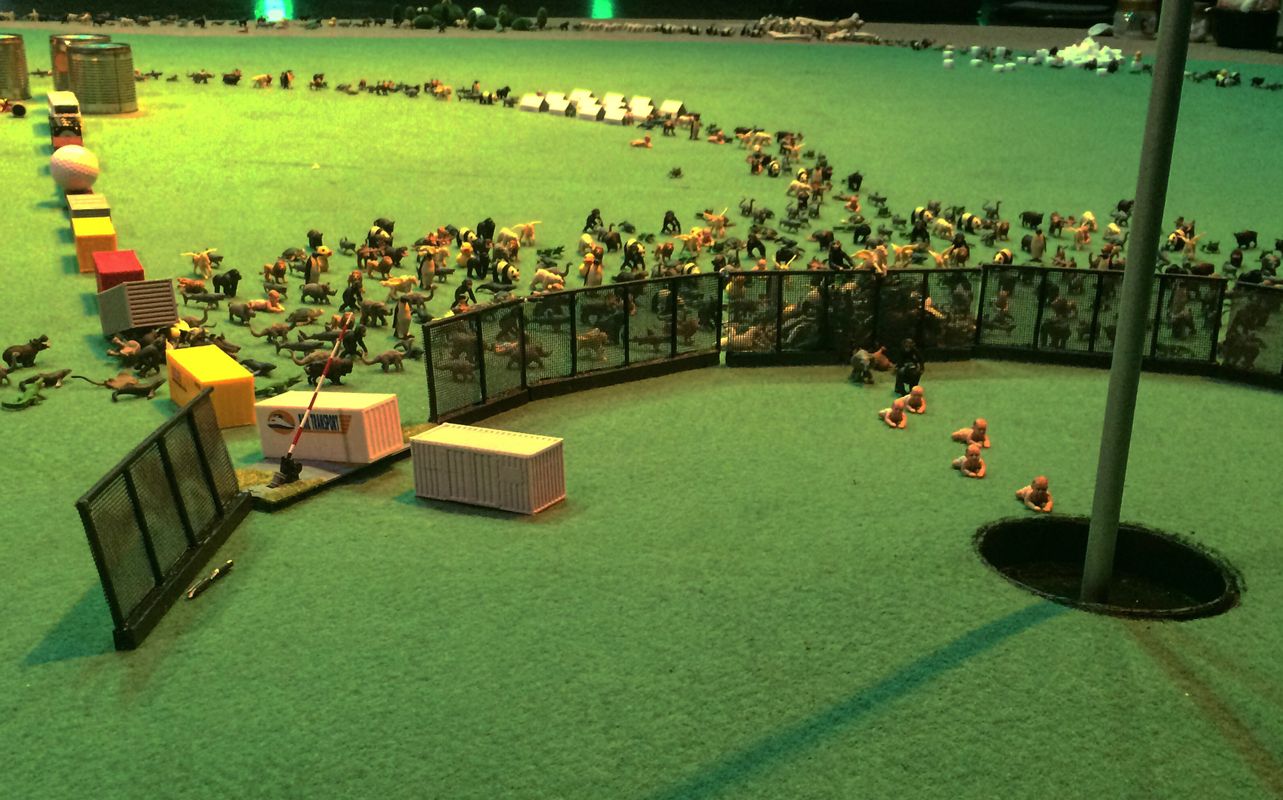 Een grasmat met een stukje zand op de toneelvloer wordt een golfveld. In het midden een groot videoscherm. Objecten worden gemanipuleerd, live gefilmd en geprojecteerd. Een fotograaf vertelt. We zien zijn attributen. We zien een prachtige postkaart van Melilla, de Spaanse enclave in Marokko - inmiddels vooral bekend als de springplank voor de vlucht naar Europa. De fotograaf maakt vandaag een iconische foto: een rij (zwarte) immigranten die op het hek wachten op hun kans. Op de voorgrond twee witte mensen die aan het golfen zijn.