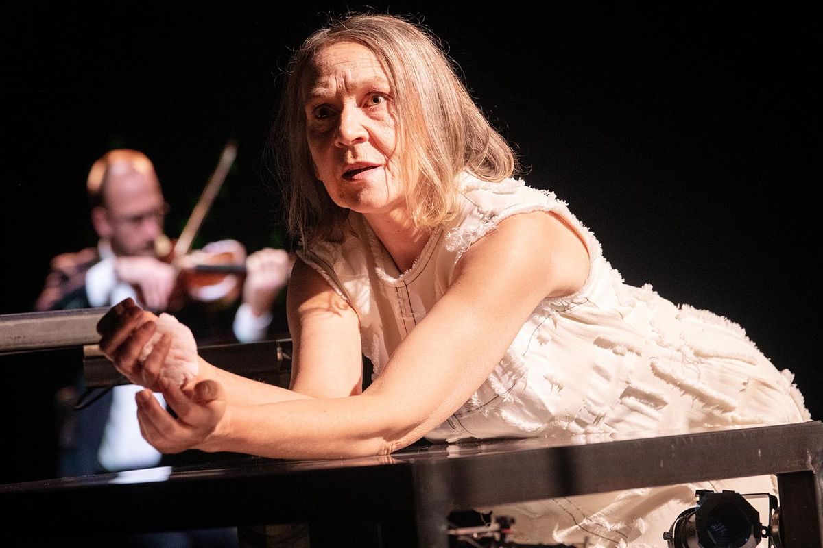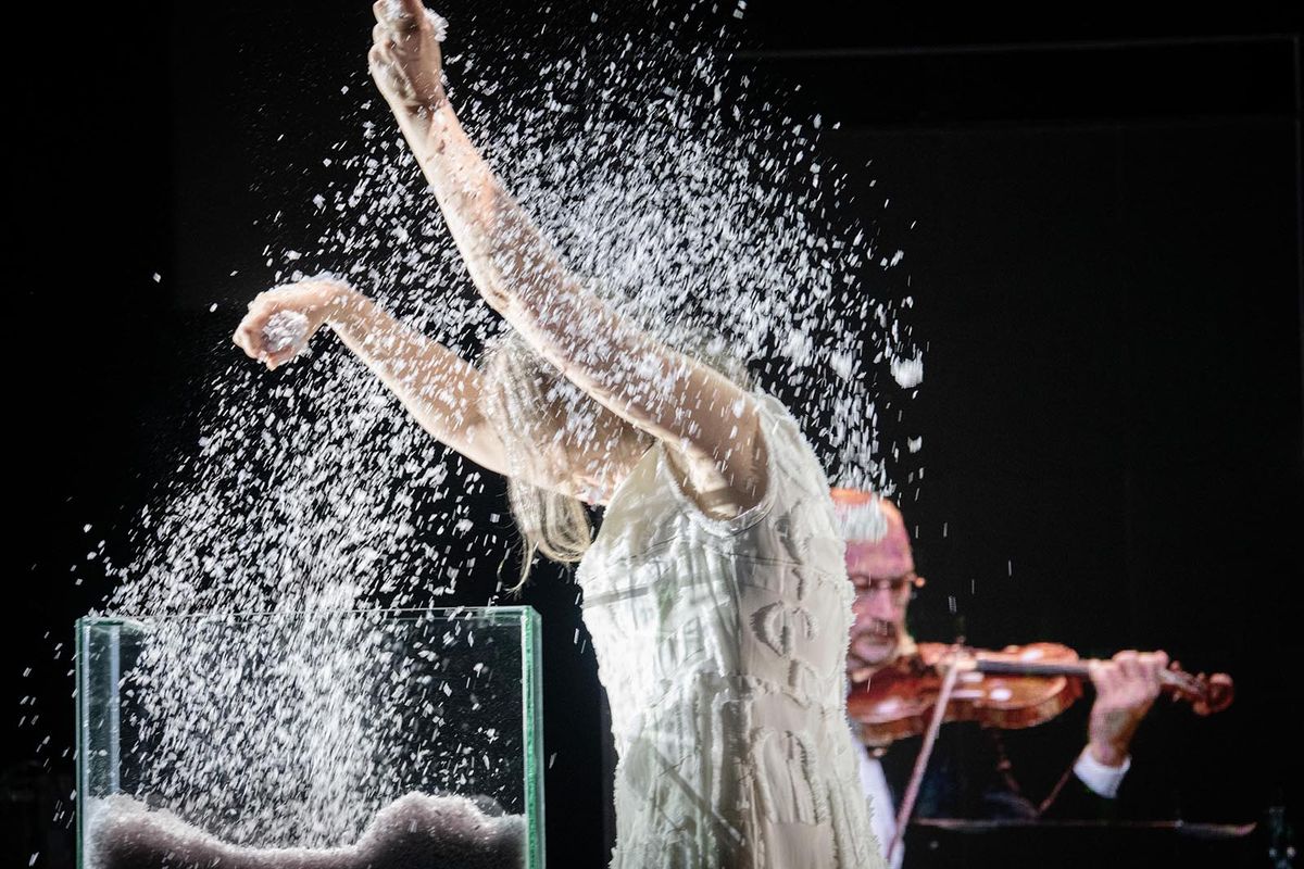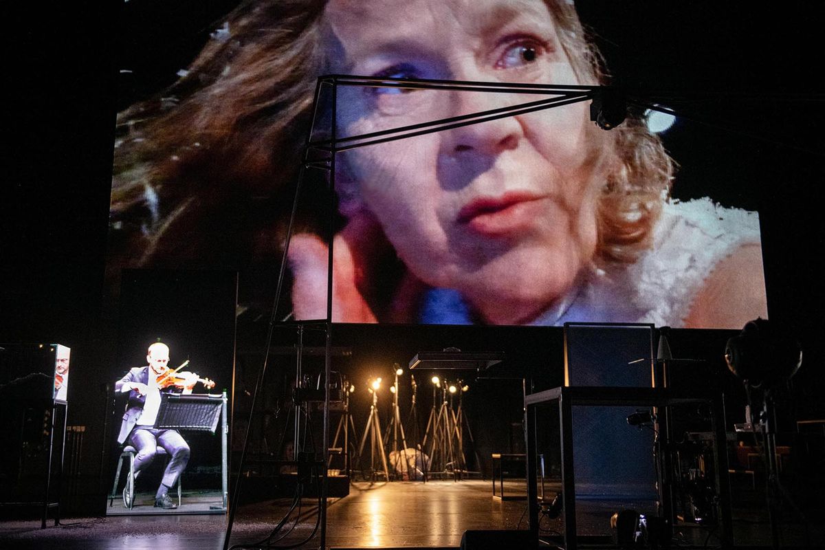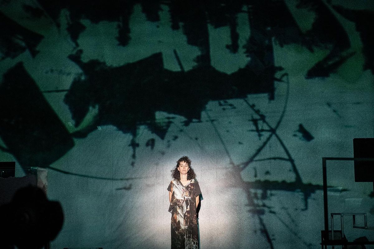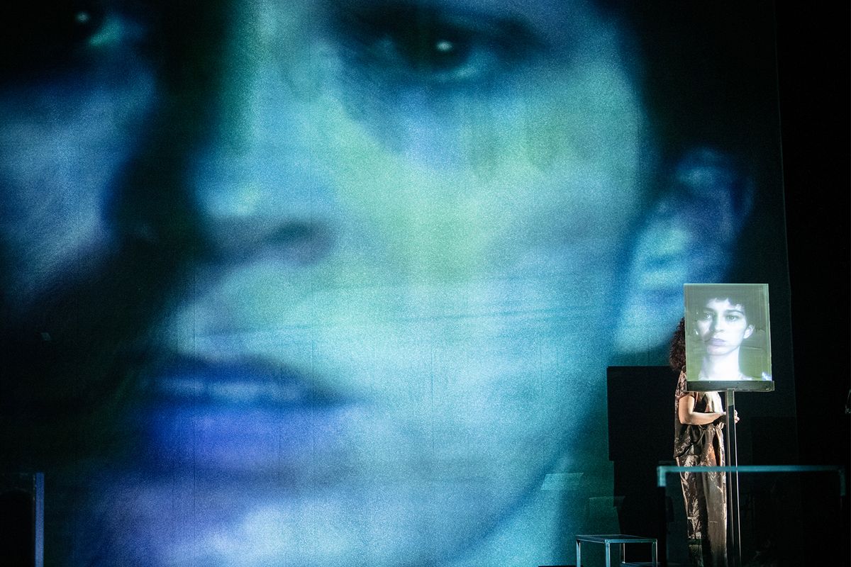 regie Guy Cassiers / tekst Stefan Hertmans (Antigone in Molenbeek) & Kae Tempest (Tiresias) / spel Ikram Aoulad (Antigone) en Katelijne Damen (Tiresias) / vormgeving & video Charlotte Bouckaert / coproductie Danel Quartet & Antwerp Symphony Orchestra / inleiding Toneelhuis/ © Vincent Delbrouck