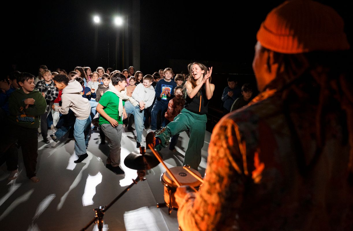 En die muziek, zet aan tot dansen! Dat mag je heel letterlijk nemen, want in deze voorstelling danst je klas mee! De voorstelling kan enkel geboekt worden in combinatie met een workshop, die gegeven wordt door choreografe en danseres Yentl De Werdt. Tijdens die workshop (die in de voormiddag doorgaat) worden dansstijlen aangeleerd die later in de voorstelling te zien zullen zijn. Een unieke kans dus om je leerlingen echt onder te dompelen in deze bijzondere dans- en muziekstijl. Niet te lang twijfelen: de plaatsen zijn beperkt!