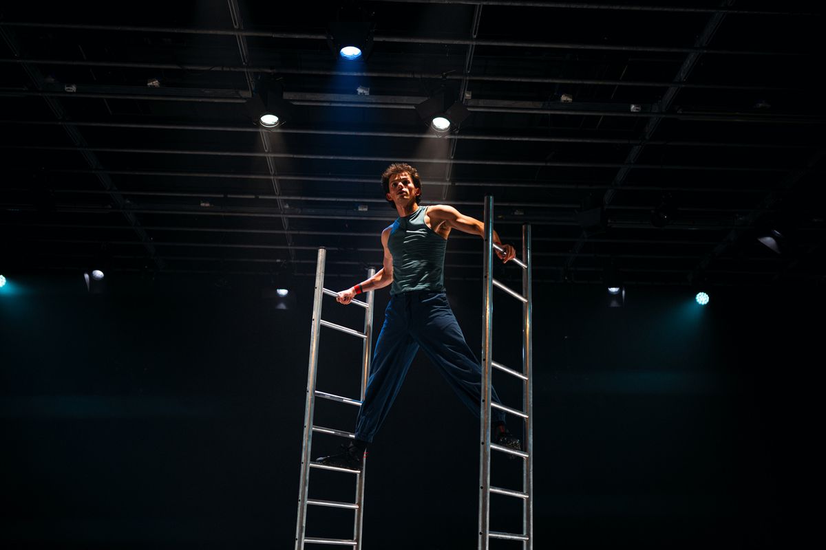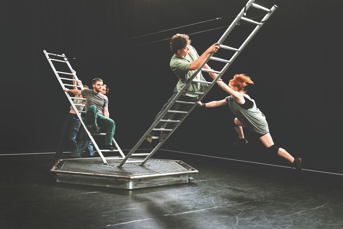 Met ladders bouwen de spelers indrukwekkende constructies, zoals boogsculpturen en draaiende kranen. Ze balanceren de ladders tot een spannend, wankelend speelveld. Ze verkennen onbekende hoogtes, klimmen, zweven en wagen zich aan een adembenemende choreografie. Elke centimeter en elke seconde is van belang. Ze zoeken de uitersten op en ontdekken hoe ver ze elkaar kunnen drijven.
