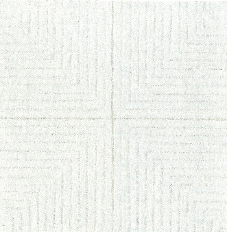 "Een wit vierkant op een wit paneel, versmeltend tot pure stilte steeds opnieuw: een lijn trekken, alsof dit nog nooit iemand eerder deed."