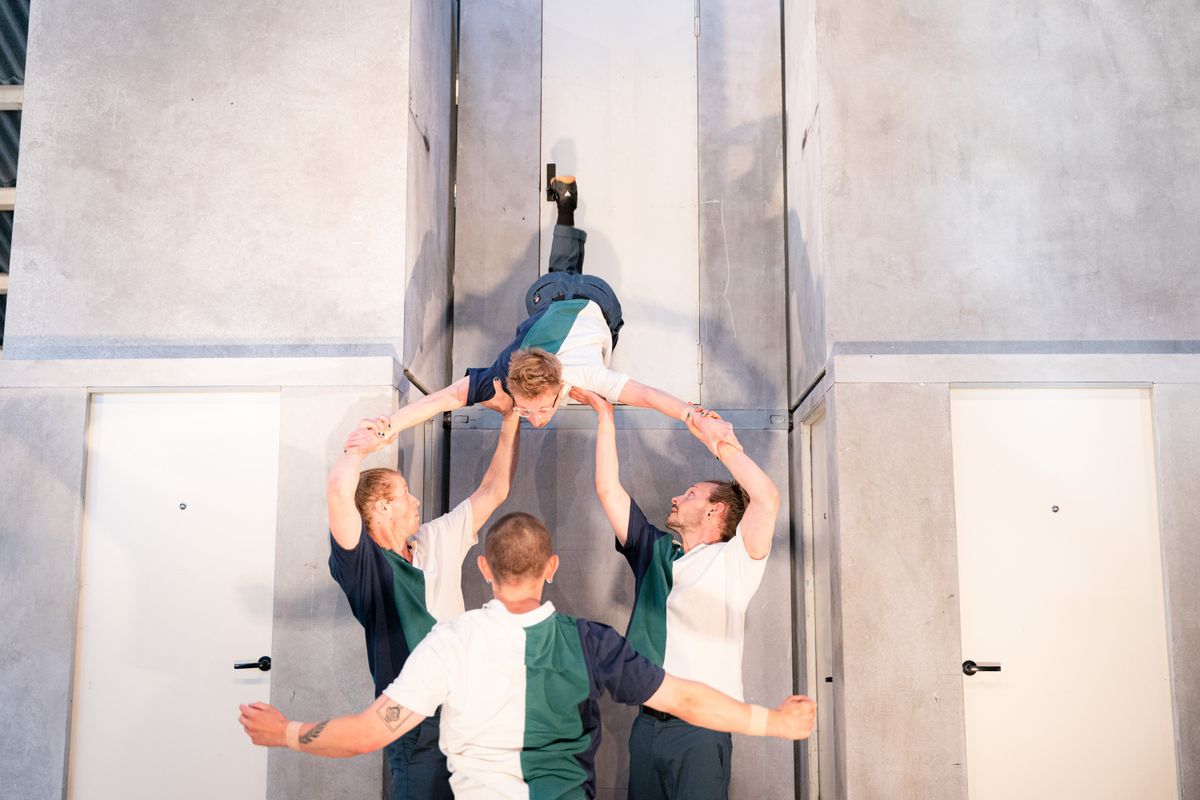concept & choreografie Piet Van Dycke / performers Christopher Mc Auley, Luuk Brantjes, Samuel Rhyner & Harrison Claxton / muziek Bastiaan van Vuuren/Bastian Benjamin / dramaturgie Marie Peeters / installatie Arjan Kruidhof & Arjen Schoneveld / scenografische ondersteuning Menno Boerdam / lichtontwerp Edwin Van Steenberghen / techniek Casper Van Overschee / productieleiding Sam Cunningham / vooronderzoek Bavo De Smedt, Marius Cavin & Raff Pringuet / coproductie Festival Circolo, DansBrabant, Theater op de Markt, HET LAB Hasselt, circ’uit, Miramiro & Cirklabo / met steun van PLAN, Stad Leuven, Grensverleggers/deBuren