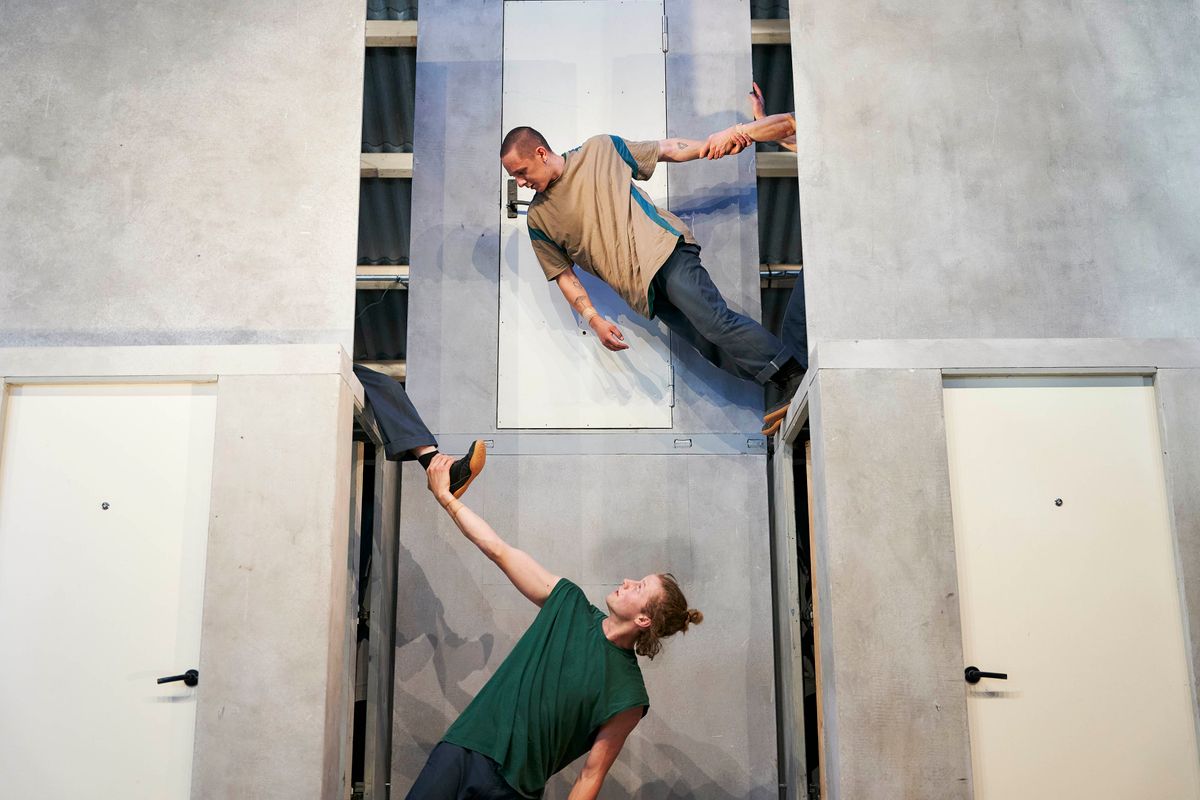 EXIT is een spannende, impressionante en fysieke circus- en dansvoorstelling waar beweging, partneracrobatie en balansbord samenvloeien.