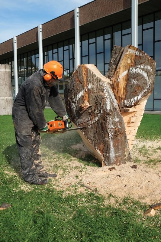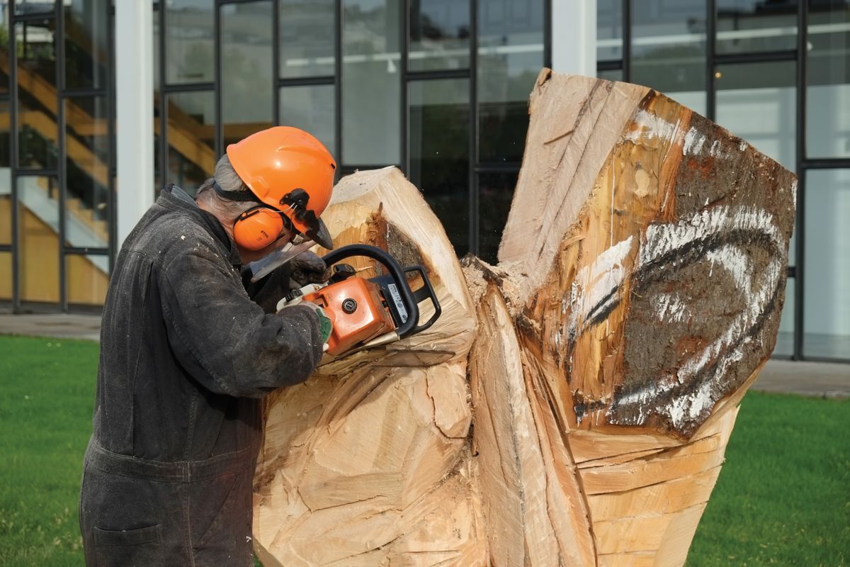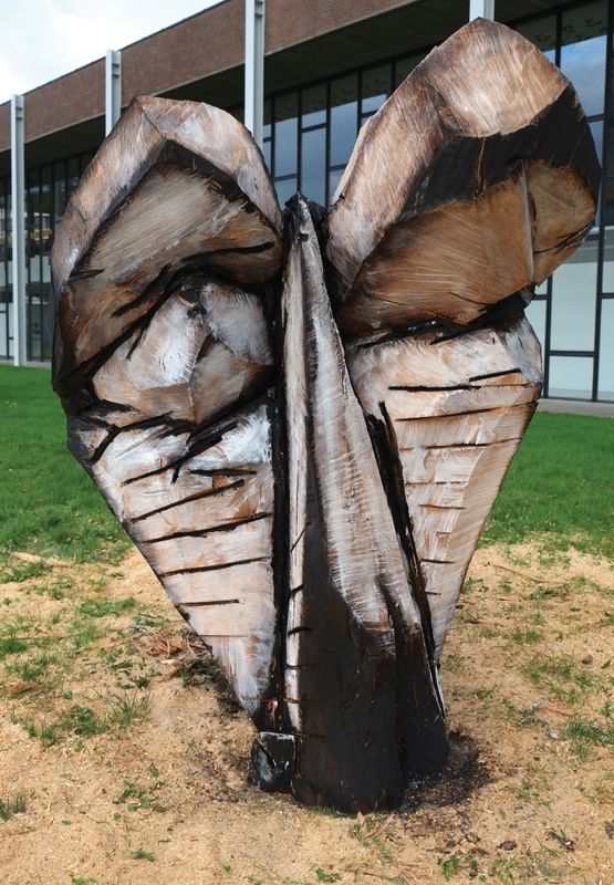 Hout is niet alleen een natuurlijk, maar ook een menselijk en tactiel materiaal en daarom moffelt de artiest de kwaliteiten van het hout niet weg en benut hij maximaal de vorm van de boom. De ogenschijnlijke tegenstelling tussen het met de natuur verbonden materiaal en de door de cultuur geschapen vorm is hier niet het enige antoniemenpaar.
