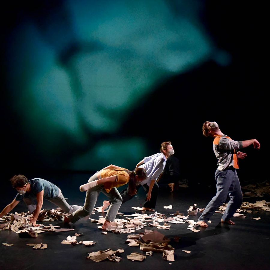 concept & regie Michèle Noiret / choreografie Michèle Noiret & David Drouard / vertolking & creatie Alexandre Bachelard, David Drouard, Liza Penkova, Sara Tan & Denis Terrasse / artistieke medewerking David Drouard / video & camera Vincent Pinckaers / muziek Todor Todoroff / extra muziek Summer samba van Walter Wanderley, An der schönen blauen Donau, Op 314 van Johann Strauss II, Back to black van Amy Winehouse &Mark Ronson & Saturno o cipolla van Eric Aldea / scenografie Wim Vermeylen / licht Gilles Brulard / kostuums Silvia Ruth Hasenclever / coproductie Charleroi danse & Théâtre National Brussel / residentie La Fabrique Chaillot - Chaillot Théâtre National de la Danse Parijs / inleiding Katie Verstockt / © Sergine Laloux