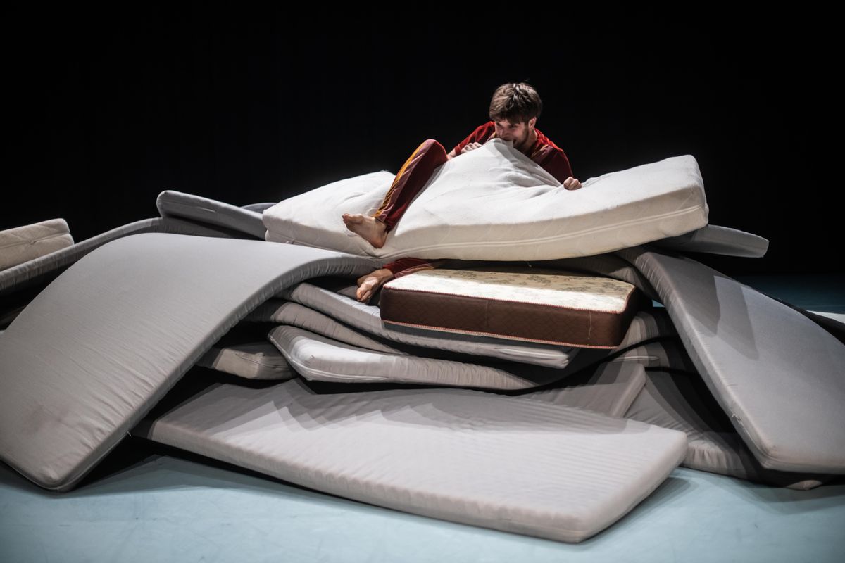 Durf jij je in iemands armen te laten vallen? Samen te springen en niet nadenken over waar je neerkomt? Al je vrienden bij elkaar te verzamelen en als één grote kluit armen en benen door te kamer te koprollen? Of wil je liever in iemands knusse omhelzing in slaap vallen? In Lepeltje lepeltje kan dat allemaal. In een wereld vol matrassen gaan drie dansers en een muzikant samen aan de slag, op zoek naar dat ene magische moment dat je voelt dat je zweeft en alles om je heen verdwijnt.