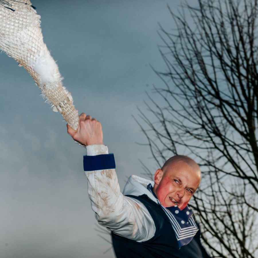 In de Antwerpse polders trekken mannen te paard de kop van een dode gans. De gans hangt ondersteboven aan een galg en is slachtoffer van de jacht die eerder plaatsvond. De winnaar wordt tot koning gekroond, koning van het gansrijden.
