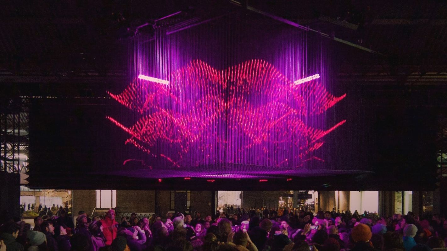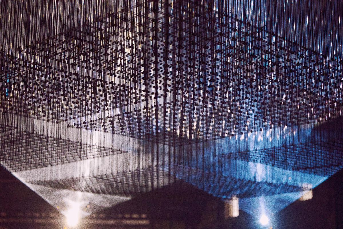 Als een zwerm vuurvliegjes getraind om een gesynchroniseerde dansroutine uit te voeren plotseling in een rockshow vloog, zou het er ongeveer uit kunnen zien als deze mindblowing installatie. Als de MacGyvers van de installatiekunst combineert dit Londense trio buizen, pijpen en een enkele projector in een werkelijk verbluffende lichtshow.