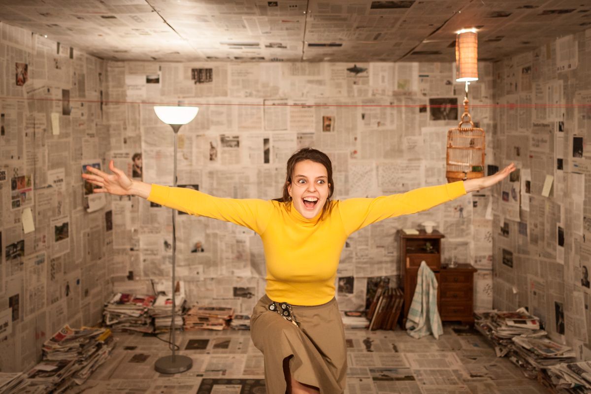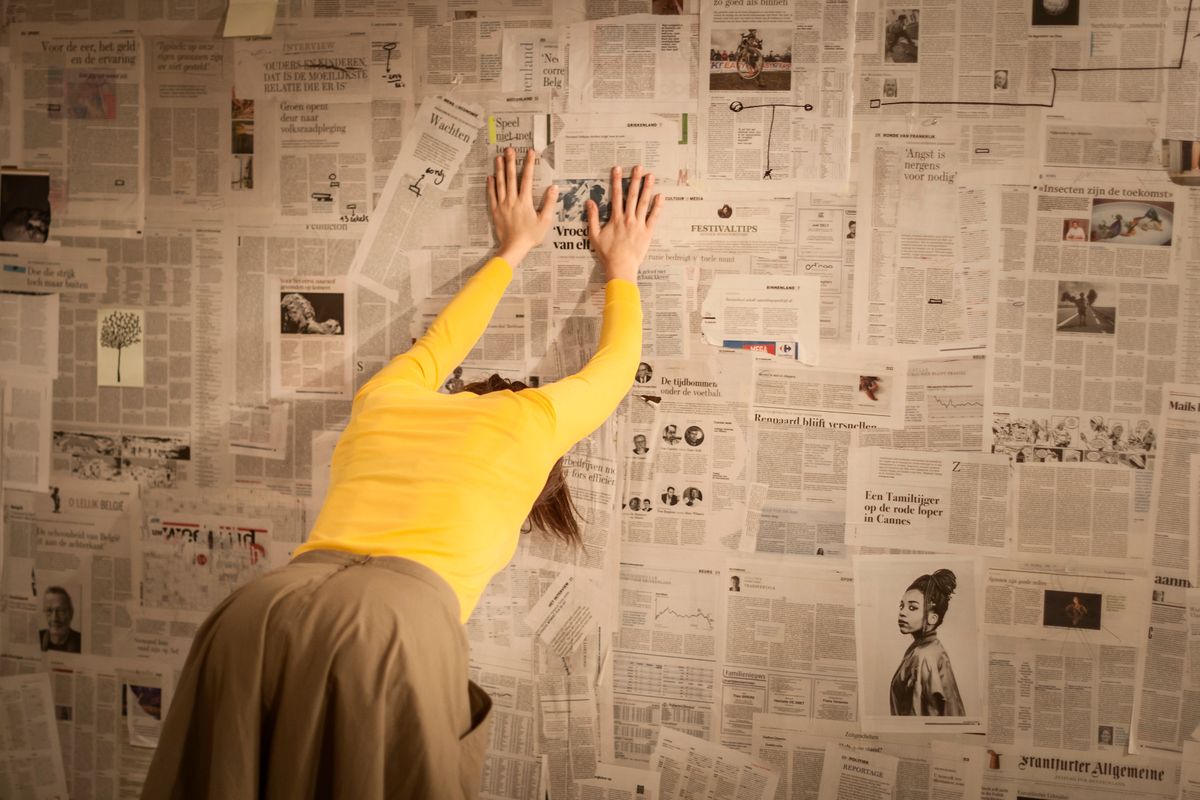 Welkom! Welkom in deze kamer die van boven tot onder behangen is met kranten. Echt overal zie je kranten en kranten en kranten. Welkom dus in deze kamer, de kamer van Margriet Van den Eynde.