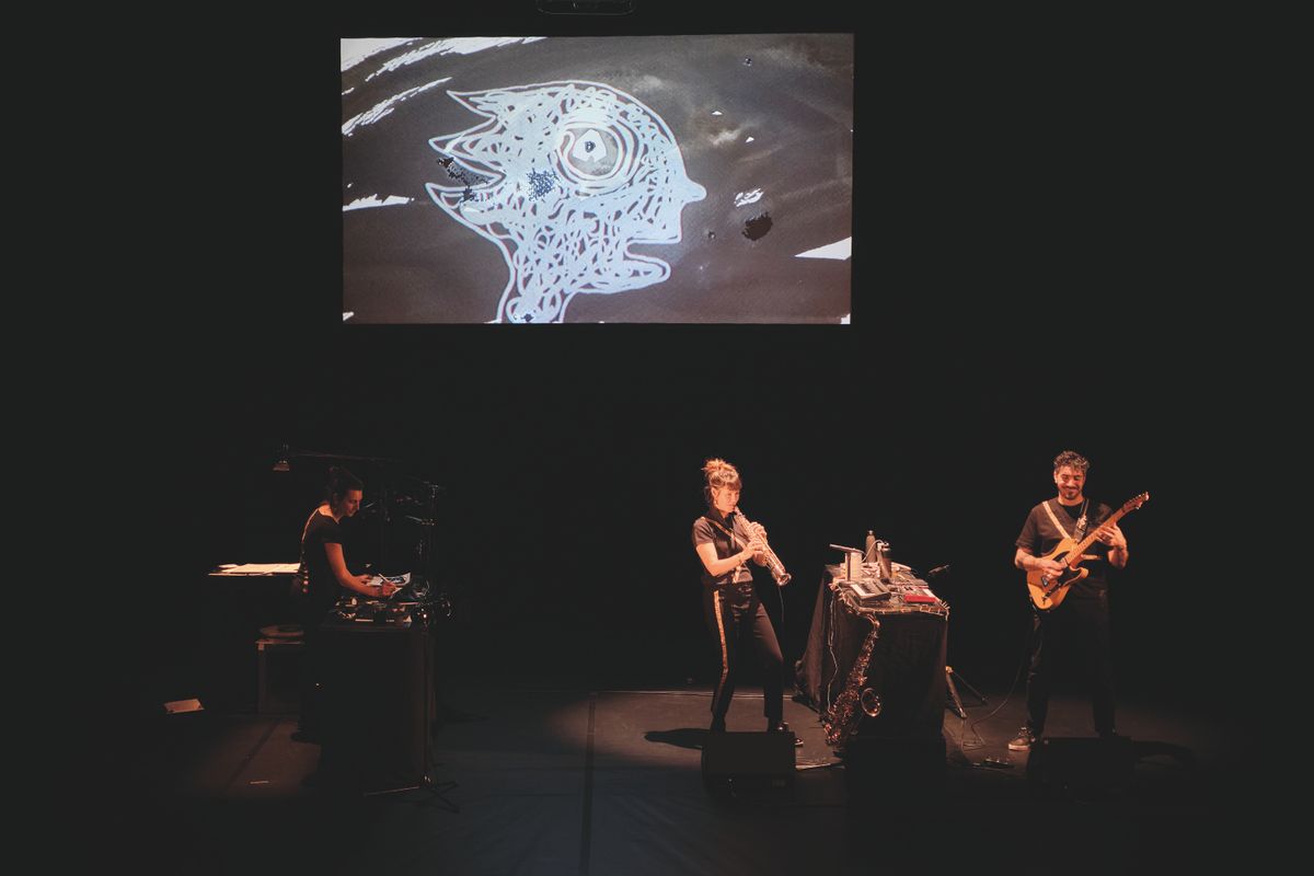 Minuit, een verrassend en betoverend live tekenconcert! Twee multi-instrumentalisten en een multi-technisch illustrator toveren het podium om tot een fascinerende wereld van jazz- en elektronische muziek, verweven met – op groot scherm – live tekeningen als een stripverhaal.