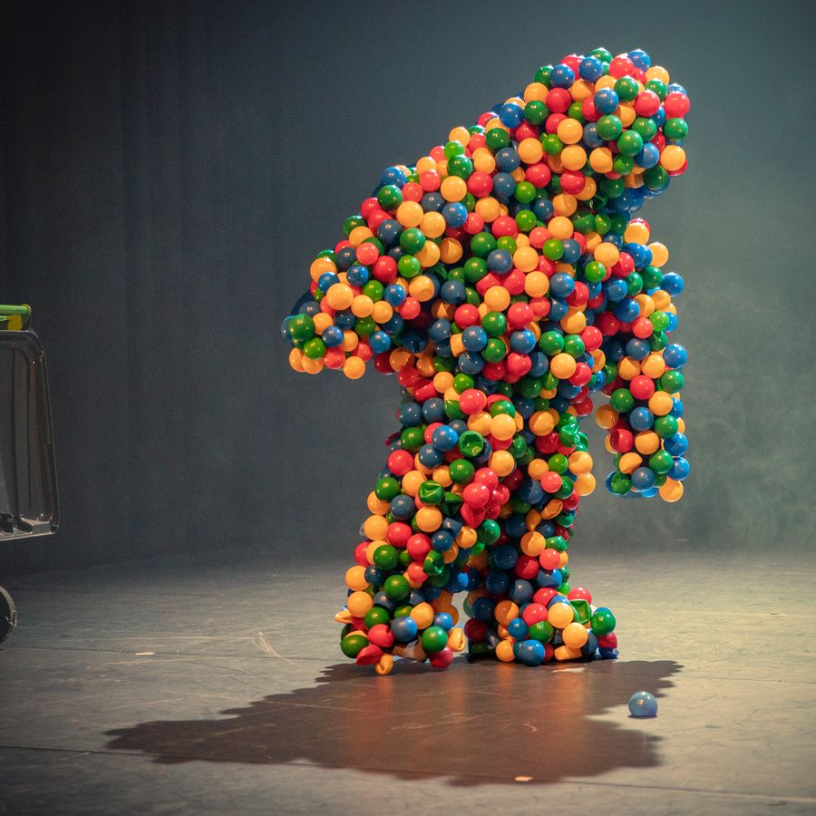 **** PlastiekBERTRAND is niet alleen een schattig figuurtje gehuld in plastic ballen, maar ook het heerlijk absurde theaterdebuut van twee costumières.