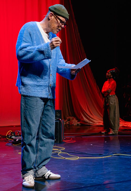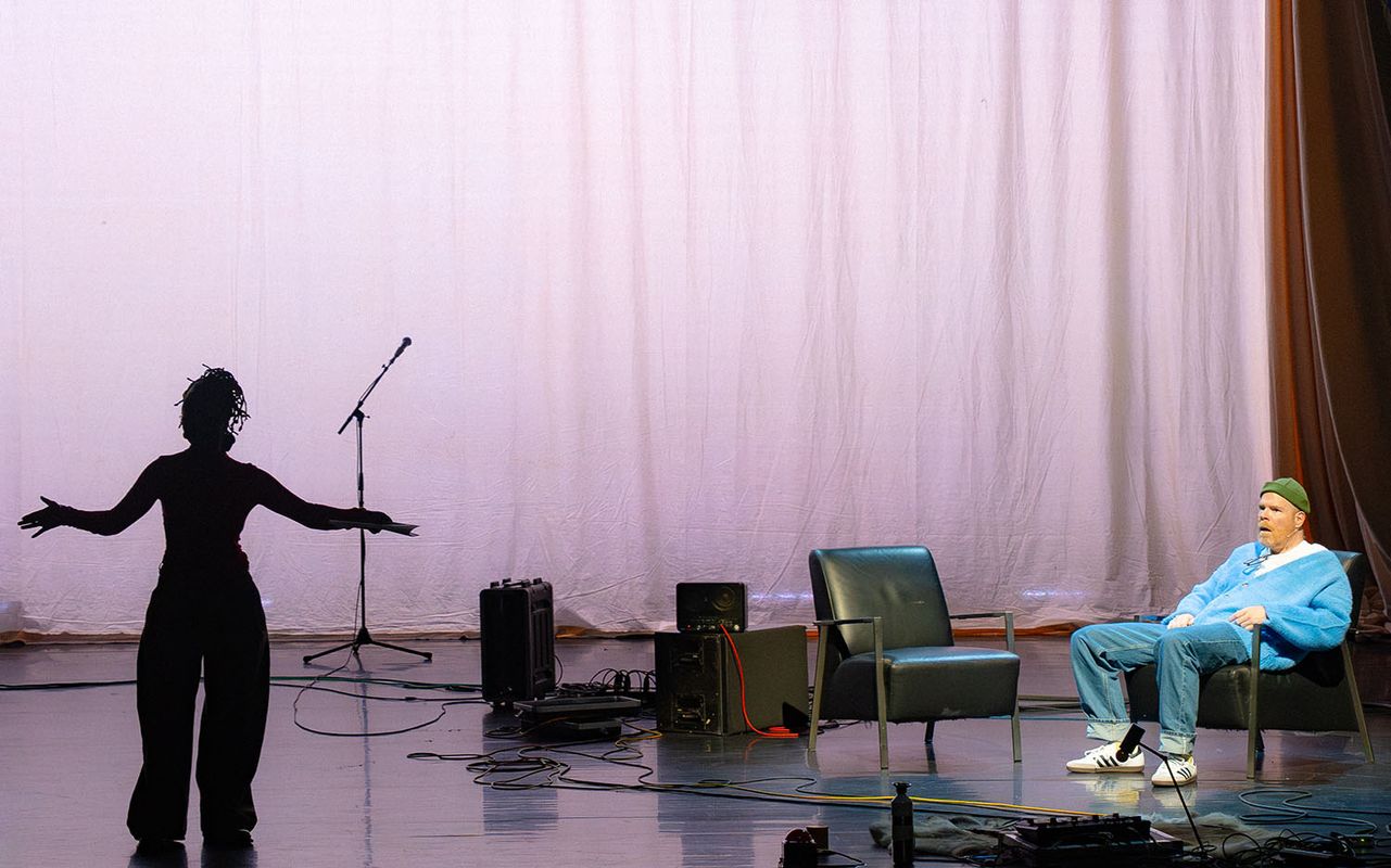 Met twee staan ze op het podium, met tussen hen in een generatiekloof, een verschil in afkomst en opleiding en de machtsverhouding tussen een gevallen ster en een aanstormend talent. Waarom doen ze wat ze doen? Wanneer en in welke mate zijn de grenzen verschoven? En wat betekent dat vandaag voor hen? Voor het theater?