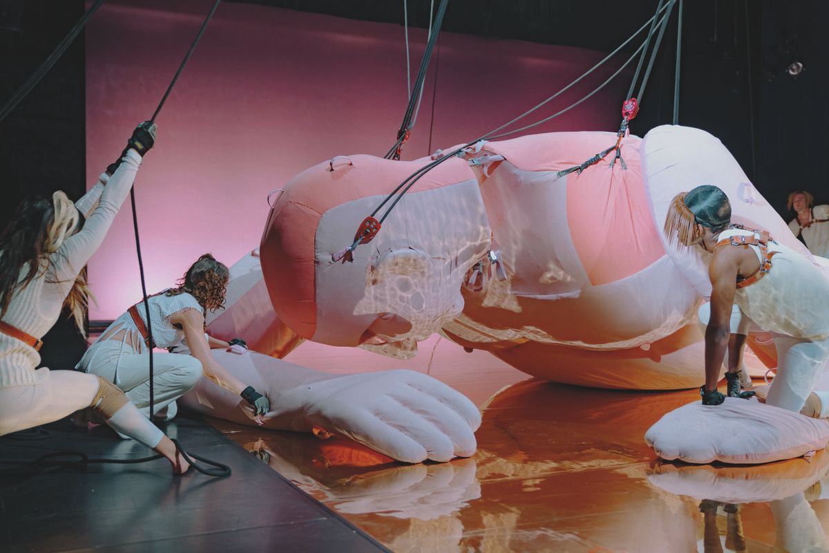 concept, regie & vorm Jef Van gestel / spel Kazanga Jonathan Linga, Arne Luiting, John Niyibizi, Andreia Rodrigues & Leila Benchorf / dramaturgie, kostuums & vormgeving Rosa Schützendorf / lichtontwerp Thomas Clause / geluidsontwerp Joost Maaskant / creatie pop Katinka Heremans / choreografisch advies Charlotte Goesaert / productie BRONKS & DE MAAN / coproductie Perpodium / © Illias Teirlinck