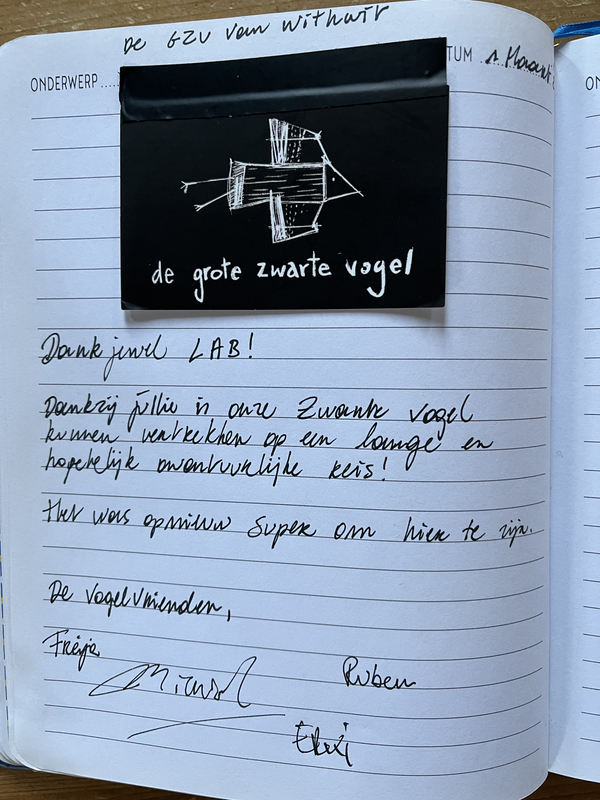De grote zwarte vogel is een verhaal dat nog verzonnen moet worden. Samen met de fantasie van de kinderen ontvouwt er zich een nieuwe vertelling, stukje bij beetje, fragment per fragment. Niemand kent het verhaal en toch is het er. De grote zwarte vogel vliegt verder de leegte in. Heeft iemand hem al gezien? Vertel en vlieg je mee?
