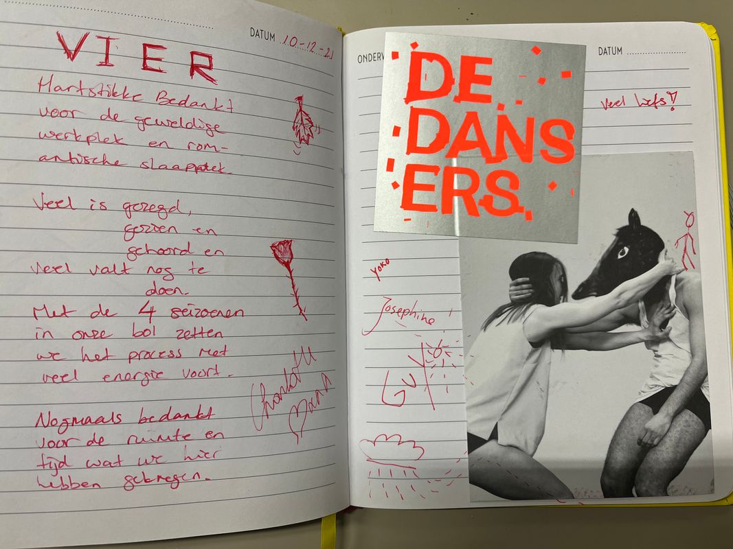 In de residentie bij HET LAB komen De Dansers kennismaken met Belgische makers. Ze nemen de voorstelling waaraan ze werken als aanleiding om werkmethodes uit te wisselen. Ze gaan samen de vloer op om te spelen met dansmateriaal dat ze voorbereid hebben en gaan ook proberen samen nieuwe scenes te creëren.