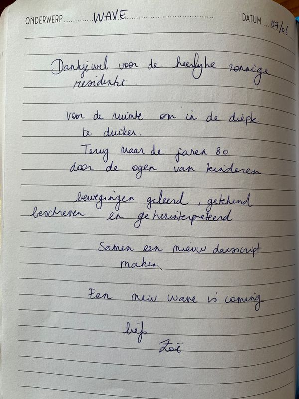 Het eerste residentieblok is toegespitst op observatie en herinterpretatie van beweging samen met een diverse jonge groep in de vorm van workshops en ontmoetingen. Op basis daarvan wordt samen met de groep een nieuwe score of bewegingsfrase geschreven. Later dit seizoen zal Zoë terugkomen om verder te werken aan dit research-lab.