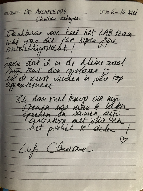 Christine komt voor een tweede residentie naar HET LAB. Ze werkt in deze tweede fase met Joke Emmers, Audrey Dero, Els Decaluwé en wordt gecoacht door Alice Reijs. Na een succesvolle theater- en filmcarrière in Nederland verhuisde Alice Reijs in 2000 naar Vlaanderen. In het theater stond ze in Vlaanderen meerdere seizoenen op de planken met Trilogie van het weerzien en Peter Handke en de wolf en speelde ook mee in Brandbakkes en Kleine Tony. Ze was veelvuldig te zien op TV en samen met haar man, Tom Van Dyck, schreef en regisseerde ze Den elfde van den elfde.