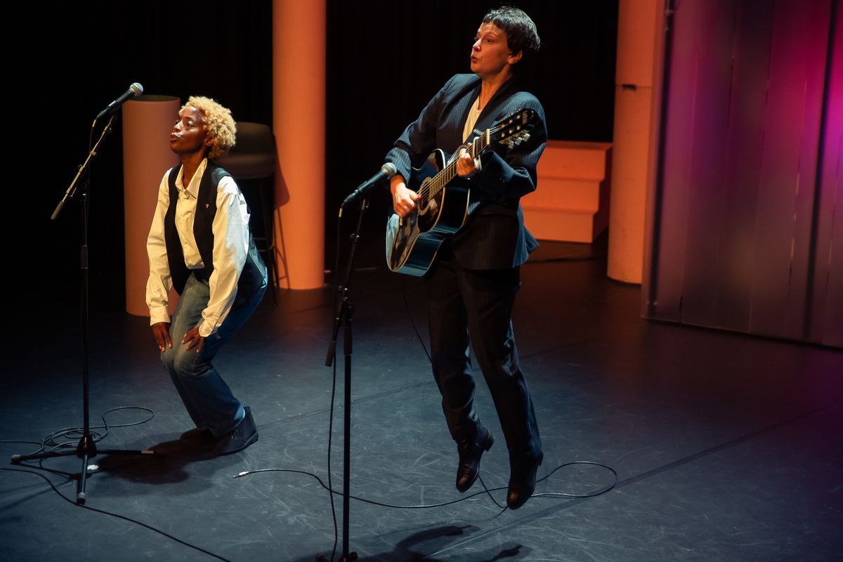van & met Kristien De Proost & Bwanga Pilipili / dramaturgie Sara Vanderieck / scenografie & kostuums Marie Szersnovicz / geluidsontwerp Brecht Beuselinck / lichtontwerp Lucas Van Haesbroeck / productie Kristien De Proost & nona Mechelen / coproductie C-TAKT, De Grote Post Oostende, CAMPO Gent & wpZimmer Antwerpen / © Philippe Digneffe & Danny Willems