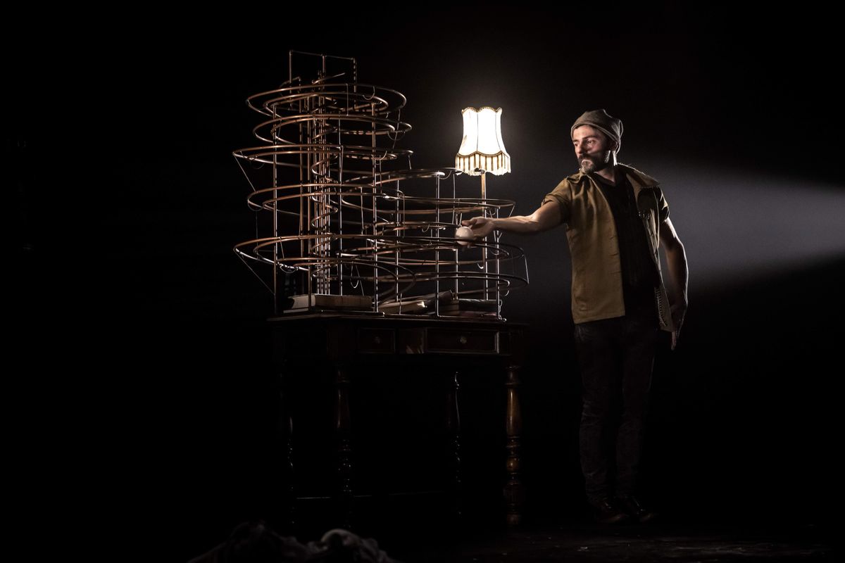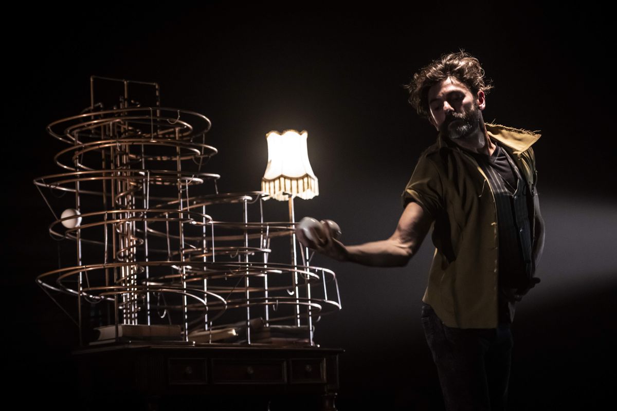 Spirals is een voorstelling waarin objectmanipulatie, magie, muziek en beeld zorgvuldig worden gecombineerd. Tim Oelbrandt vertelt het verhaal van een man die zodanig op zichzelf is dat hij het verschil niet meer voelt tussen het echte leven buiten en zijn fantasiewereld binnen.