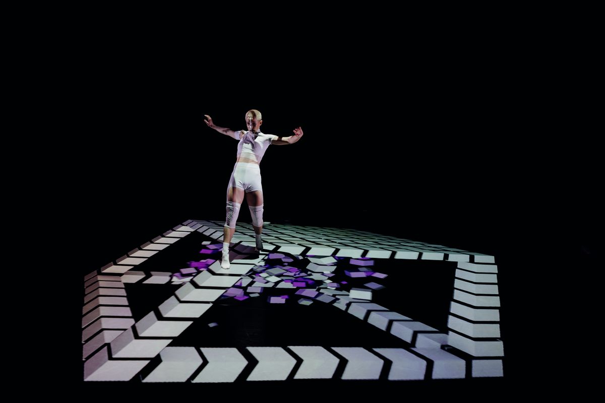 concept Tom Dale, Jemima Brown & Barret Hodgson / choreografie Tom Dale / digitale projectie mapping Barret Hodgson / dans & zang Jemima Brown / muziek Ital Tek / © Laura Rutty