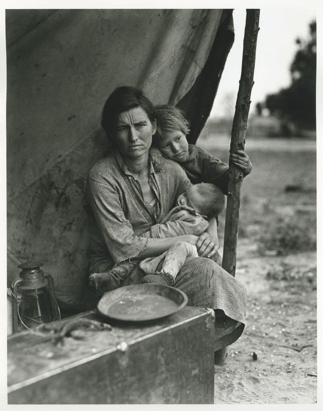Haar meest bekende foto is getiteld Migrant mother uit 1936 (te zien in de expo) waarop Florence Owens Thompson is afgebeeld met drie van haar kinderen. De identiteit van mevrouw Thompson bleef echter onbekend tot 1978.