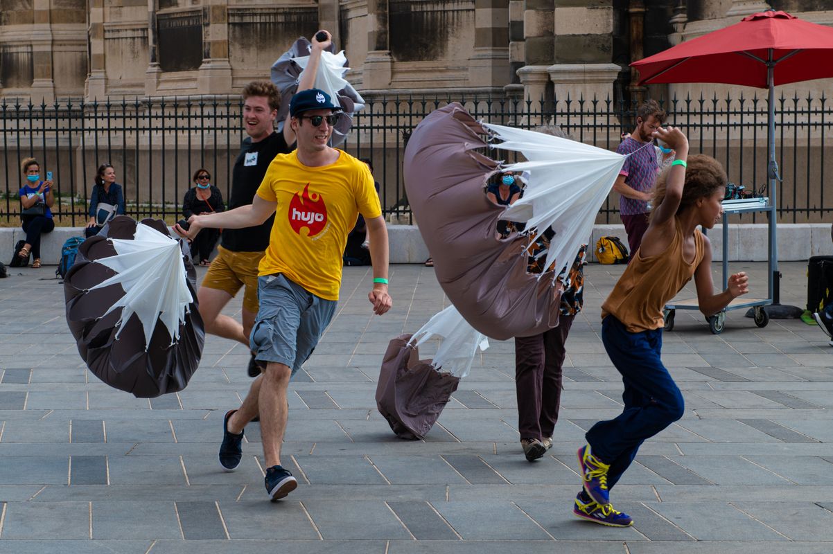 “Er is een hele wereld buiten de danszalen die nog geen toegang heeft tot theater en dans,” vertelde Seppe Baeyens. Met Birds trok hij naar buiten om van de publieke ruimte een dramatische ruimte te maken. Hoe verhouden performers, passanten en publiek zich in deze genereuze choreografie?